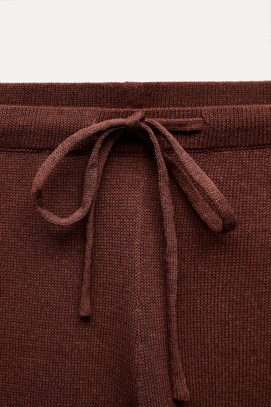 Wide Leg - Brown - Knit Pants