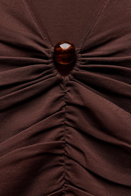 Gathered Knit - Red Brown - Knit Top